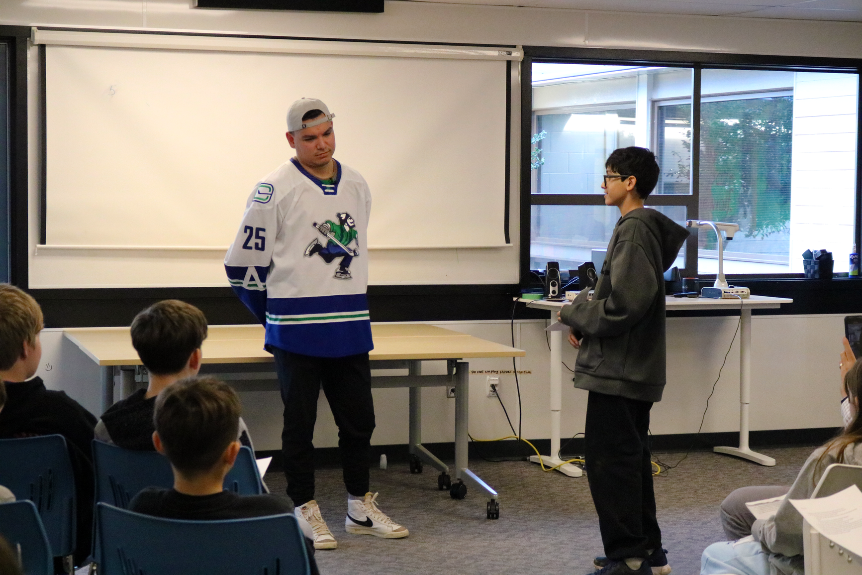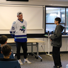 Abby Canucks Brady Keeper visits Chief Dan George Middle