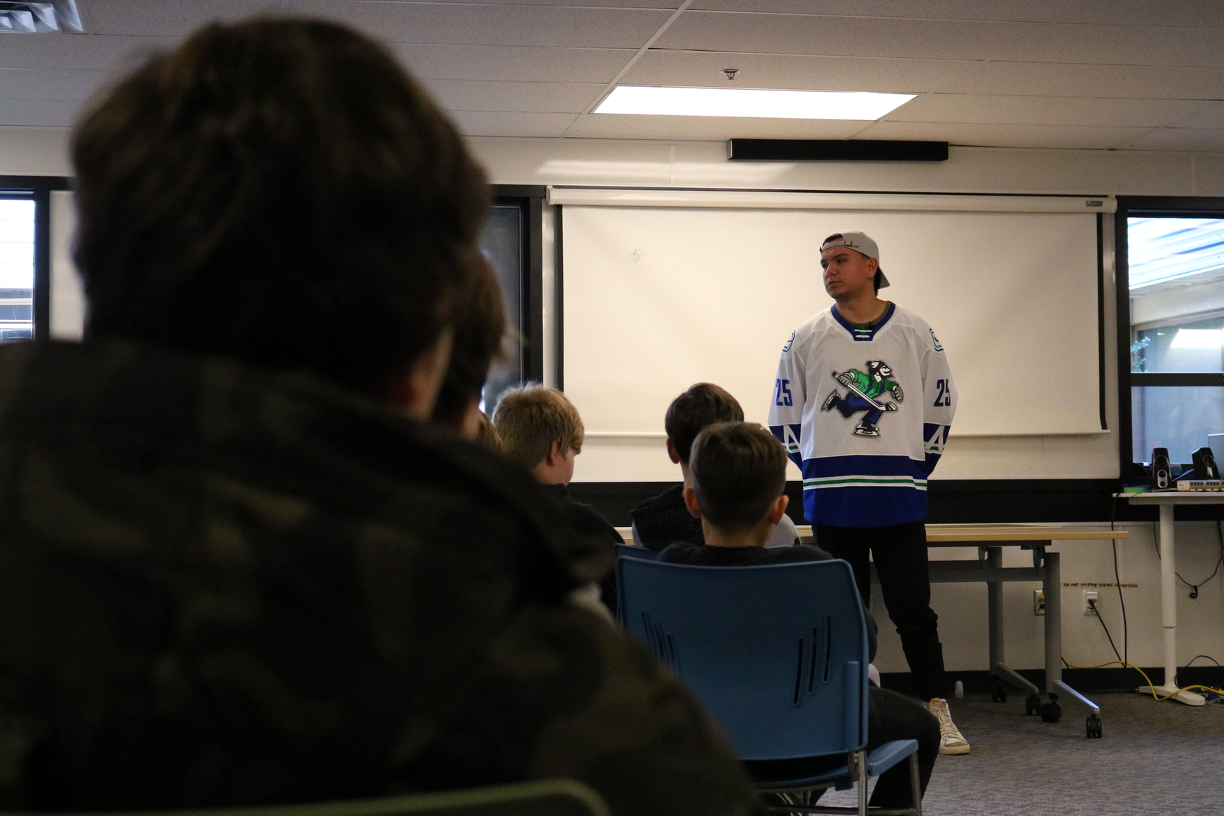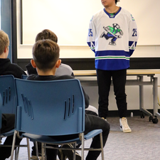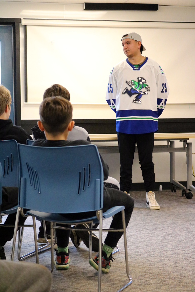 Earlier this month, a group of Indigenous students at Chief Dan George Middle school had the unique opportunity to visit with Brady Keeper, a professional ice hockey player who serves as a defenseman with the Abbotsford Canucks. His visit provided students with an insight of what it can be like growing up as an Indigenous person entering the hockey world.