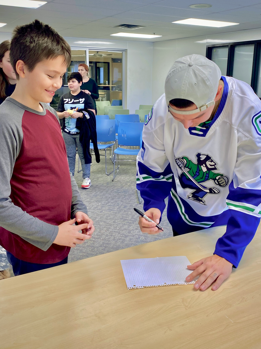 “It was great to have Brady come and visit our students.” said Jamie Beck, Principal of Chief Dan George. “We really appreciated the stories he shared about his youth and his journey to becoming a pro hockey player. Our students were excited to be able to ask him so many questions and loved meeting another strong Indigenous role model.”