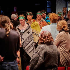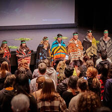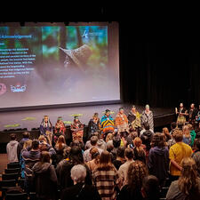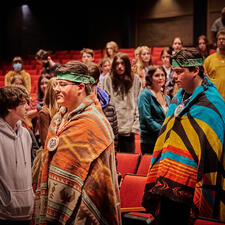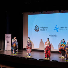On April 27, 2022, at Abbotsford Arts Centre, the Mamele’awt Community Indigenous Education Centre honoured the 2022 Indigenous Role Models. Before entering, Role Models were covered with a blanket as a way of claiming the students, giving them a warm hug, and helping them on their journey forward, along with a headband to remind them to have good thoughts and a good mind. Chris Silver, Councillor of Semá:th First Nation began the Ceremony with a welcoming song and explained the importance of the Ceremony. Mr. Perry Smith, Director of Curriculum, was the traditional speaker and further explained the meaning of the day and how protocols are in place to ensure the Ceremony is done well, with a good heart and a good mind. Students were brought in by Tyrone Thomas, Jessi Old Coyote, and Tlatsemot leading in an honouring song as the students were brought forward into the space. Each student was honoured on stage by either their Indigenous Support Worker or Teacher for Indigenous Success, who expressed each student's hard work, dedication to culture, and future goals which brought them to be honoured as Role Models. The day was filled with gratitude and inspiration as we celebrate these students' accomplishments. The Honouring Ceremony was live-streamed and can be viewed on the Abbotsford School District YouTube page.